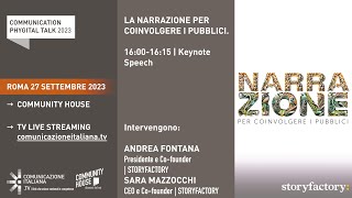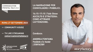 Communication Phygital Talk | Keynote Speech iniziale | LA NARRAZIONE PER COINVOLGERE I PUBBLICIvisualizza il contributo LA NARRAZIONE PER COINVOLGERE I PUBBLICI | Talk Show | ASCOLTO E STRATEGIA: COME ATTIRARE L'ATTENZIONEvisualizza il contributo Talk Show | INTELLIGENZA ARTIFICIALE E STORYTELLING: IL PRESENTE DELLA COMUNICAZIONE | Storytelling & AIvisualizza il contributo |